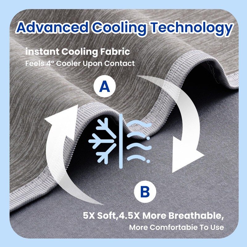 - Double-Sided Cooling Design: The top is made from special 70% mica nylon with 30% cooling protein microfiber,such perfectly scientific combination brings lasting coolness and instant coolness both.Cooling blankets make people feel more comfortable, more breathable and cooler on the unbearable hot summer days.The bottom is made of 100% cooling protein microfiber, which is soft, skin-friendly,comfortable and breathable,perfect for spring and autumn.