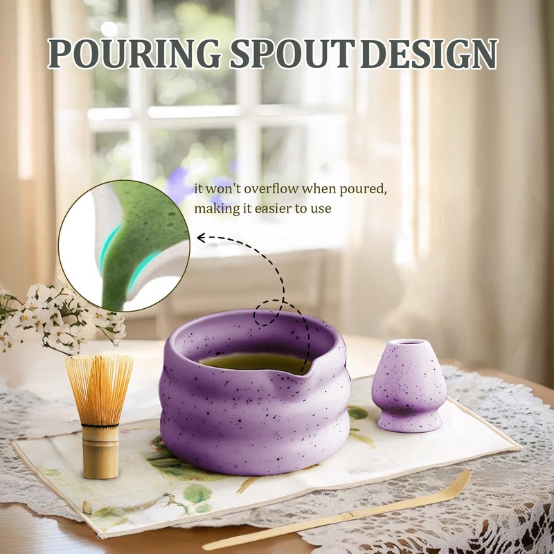 • 【PRACTICAL DESIGN】The matcha whisk and bowl set features a spill-proof spout for easy pouring. The bamboo whisk’s tines create velvety foam for ceremonial grade matcha powder. Designed for comfort, it pairs seamlessly with tea cups or matcha glass servings. A must-have for matcha kits!