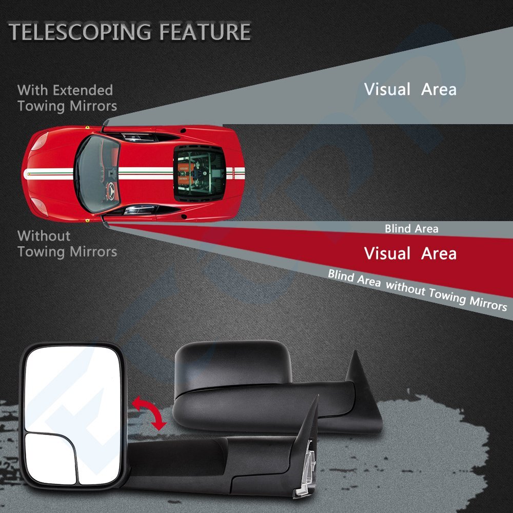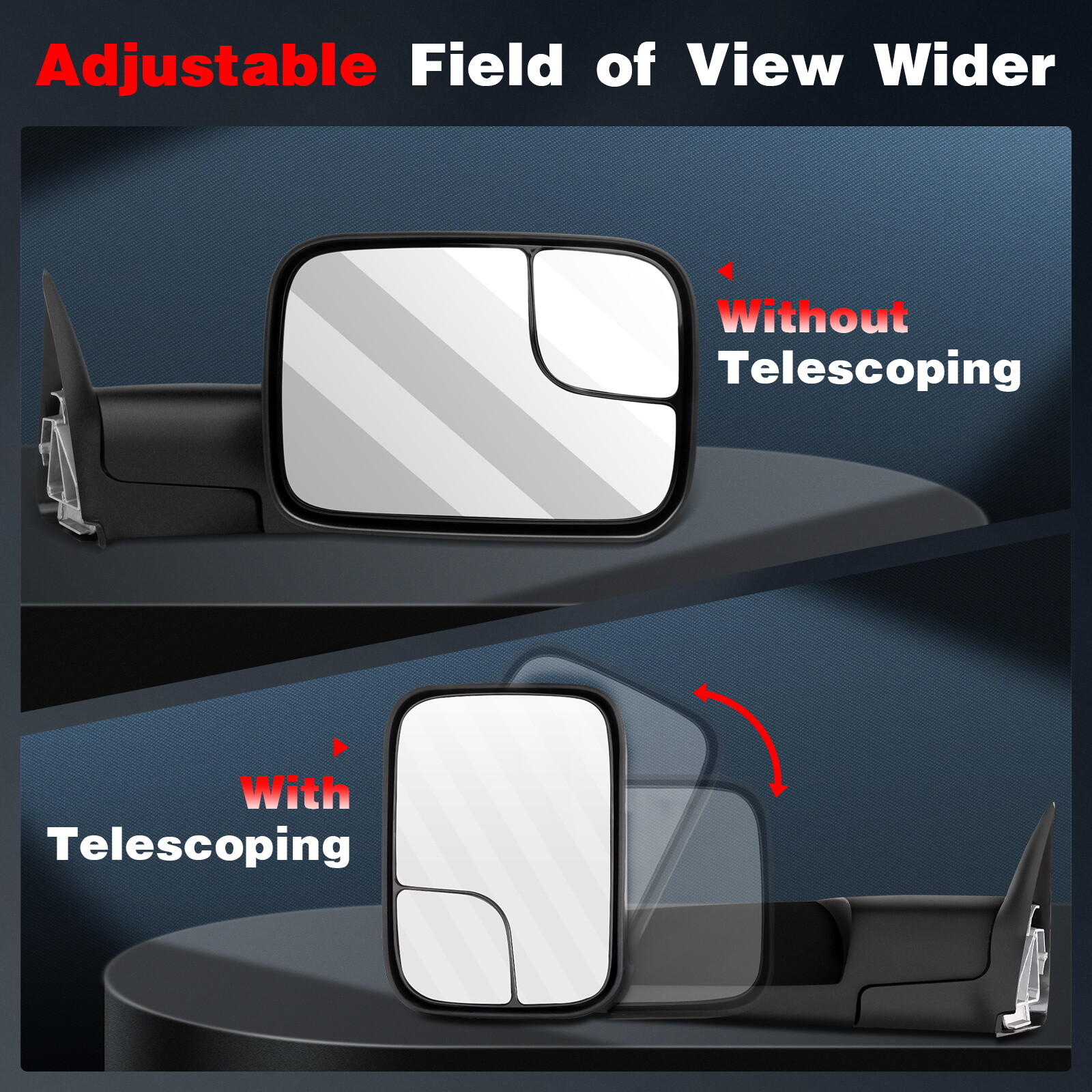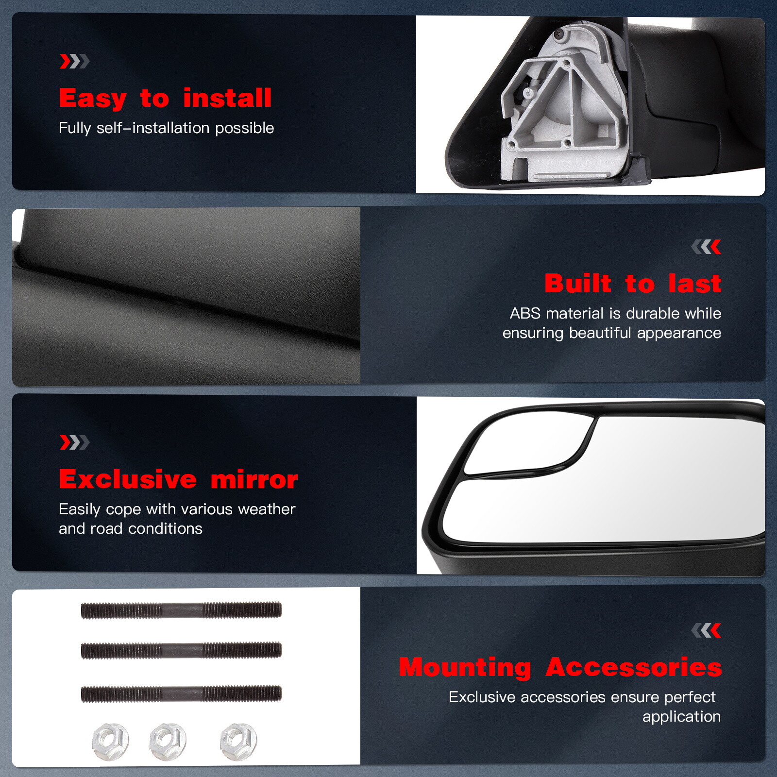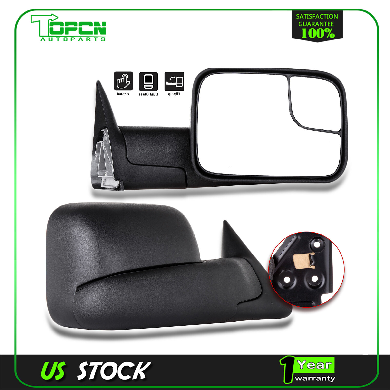 topcn-autoparts Left+Right For 1994-01 Dodge RAM 1500 94-02 2500/3500 Tow Flip Up Manual Mirrors
