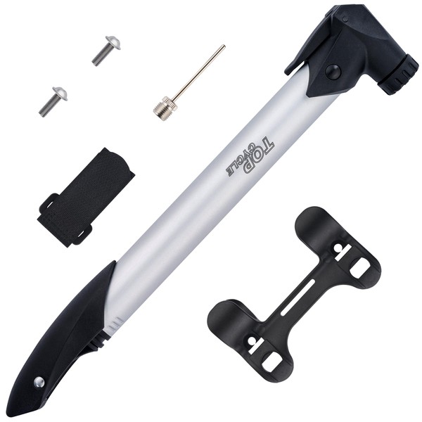 Topcycle High Volume Portable Hand Air Mini Pump with Needle for Mountain Road Bikes, Soccer Ball, Basketball Bicycle Tires, Gonfleur Pompe de Pneus Vélo, Ballon de Soccer, Fits Schrader Presta Valves