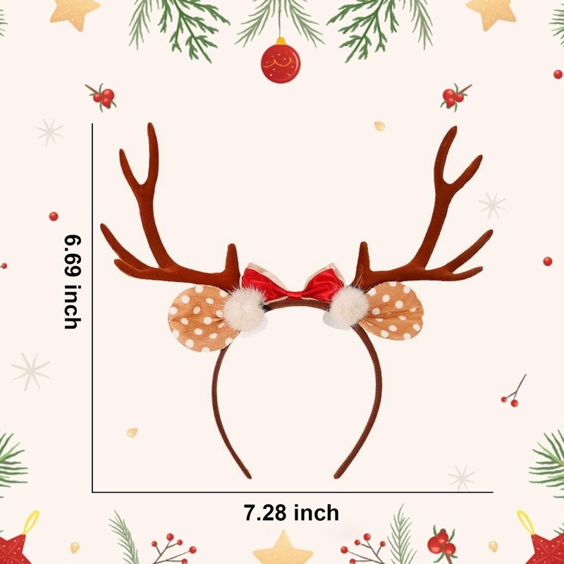 - Christmas Decorations: You will receive a pair of brown antler headband, which feature deer ears, antlers, and red bow, suitable for adding a joyful Christmas holiday touch to your look