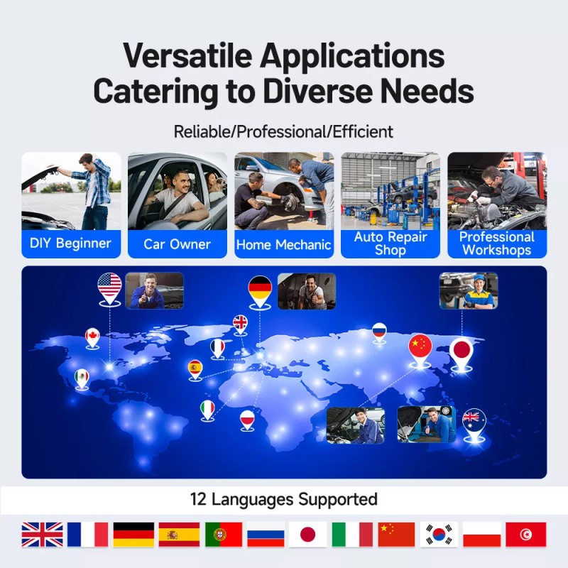 - Supported System: Engine, ABS, SRS, Transmission, Oil Reset, DPF, EPB, SAS, TPMS, BMS, Throttle Adaptation