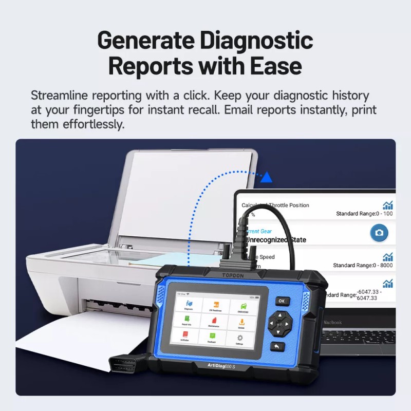 It's worth mentioning that the AutoVIN technology allows you to instantly identify the vehicle's identity and start repairs! There's no need to manually enter the vehicle's VIN anymore.The AD600S will automatically generate diagnostic reports and enable you to share your reports electronically.