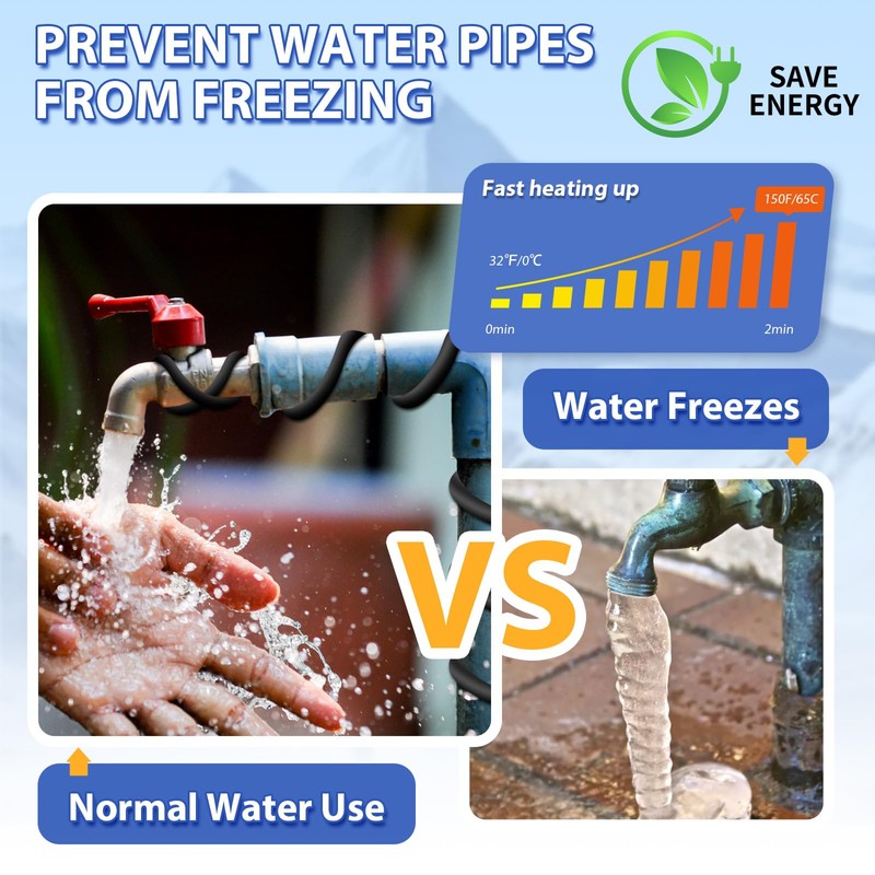 3-160ft Length: Perfect for water pipes with different length requirements. Energy-Efficient: Keeps your costs down during winter.