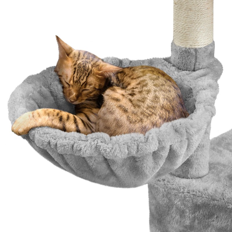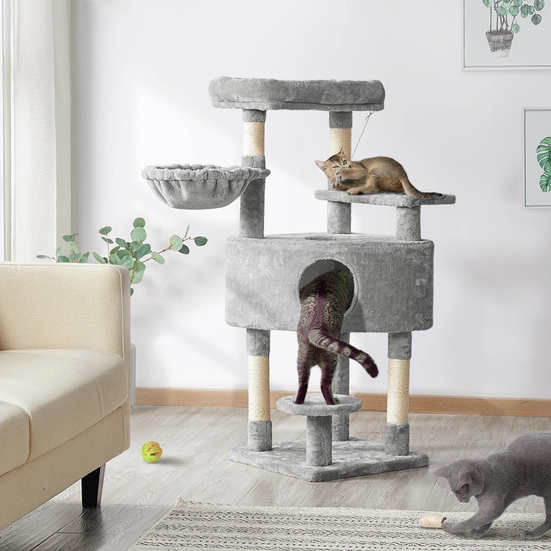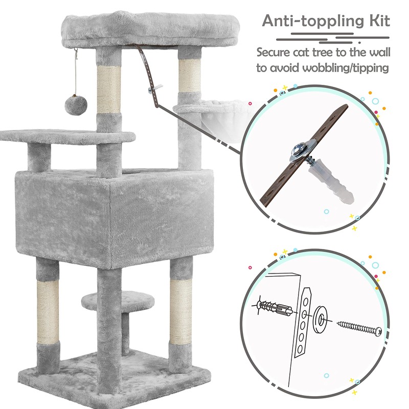 - 👉Practical Scratching Tree👈Worry about cats scratching your sofa? Give him/her another option, sisal rope scratching posts. The scratching posts of this cat tower are covered by natural sisal ropes, which cats will fall in love with them, the good substitute for sofa, bed or leather chairs.