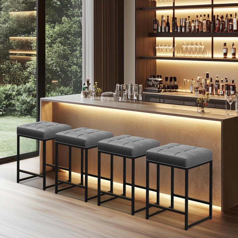 Topeakmart Bar Stools, Faux Leather Bar Stools, Set of 4 Counter Height Bar, Bar Stools Set for Kitchen Counter, Gray