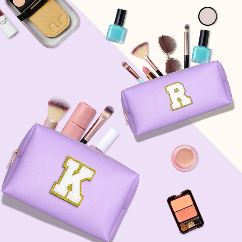 - Unique Fashion Design: You will get 2 pack makeup bag in total, features a gold glitter chenille patch with your initial for a personalized touch, make your bag unique and eye-catching. Comes with 26 letter styles to choose from, you can choose your initials or other letters with special meaning according to your preference