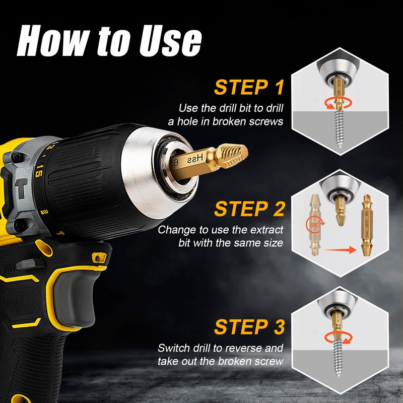 - Versatile Applications: Tailored for diverse tasks such as home repairs, automotive maintenance, construction projects, and metalworking. Designed to effortlessly handle various challenges including stripped, broken, or frozen screws, bolts, and nuts