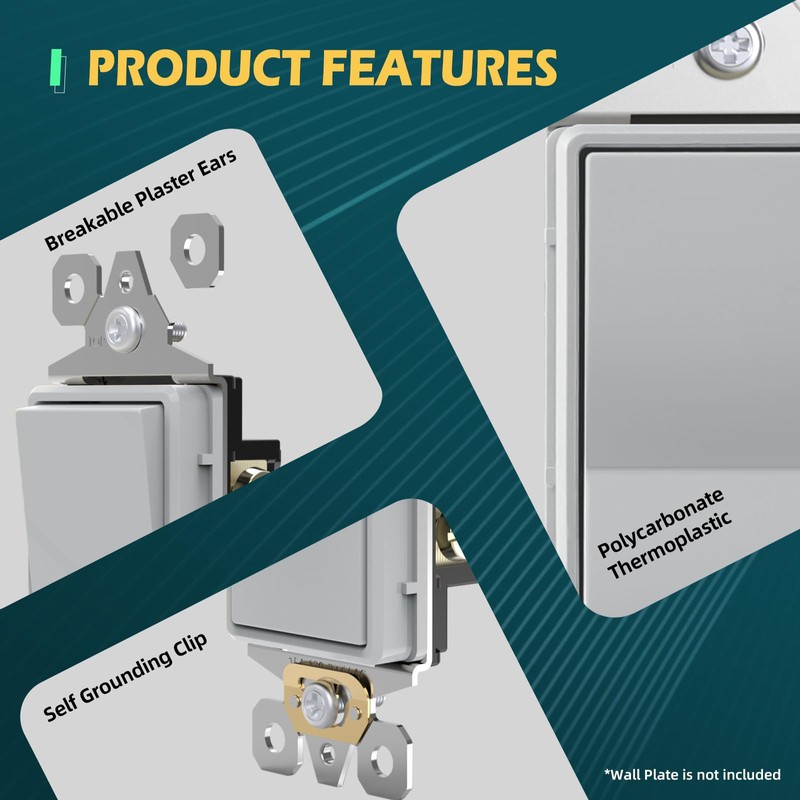 - Electrical light switches handles lighting fixtures up to 15A and works for both single pole setups and 3-way installations allowing control from two different spots