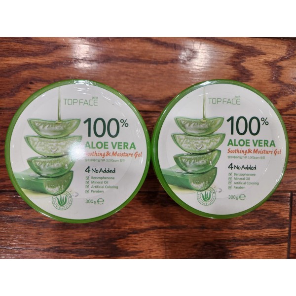 2 TOP FACE 100% ALOE VERA SOOTHING & MOISTURE GEL NO PARABEN NO MINERAL OIL 10.8 OZ EACH