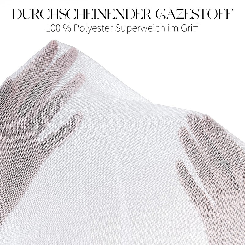 - Size and material: 2 pieces curtain drawstring, fabric dimensions: approx. 140 x 140 cm in height x width per piece. The curtains are made of high-quality polyester fibre, which is finely textured by special weaving techniques and achieves a lightweight, durable and semi-transparent effect.