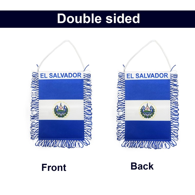TOPFLAGS EL Salvador Flag 4 X 6 Inch Fringe EL Salvador Flags Car Window Hanging Flag Mini Flag Banner Double Sided Hanging Flag