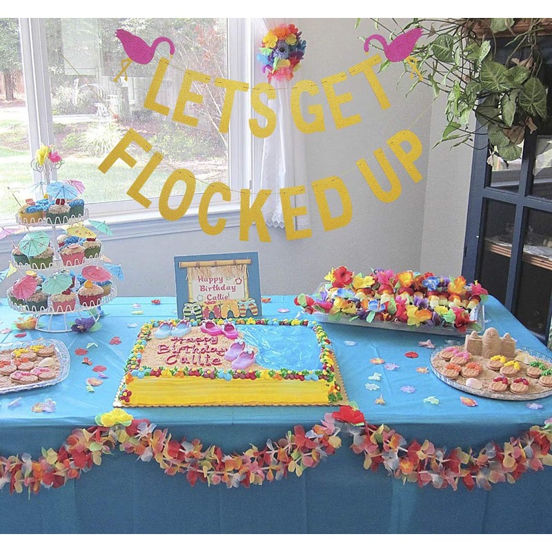 Topfun Flamingo Let's Get Flocked Up Banner for Bachelorette Party Hawaiian Tropical Luau Beach Summer Party Decorations