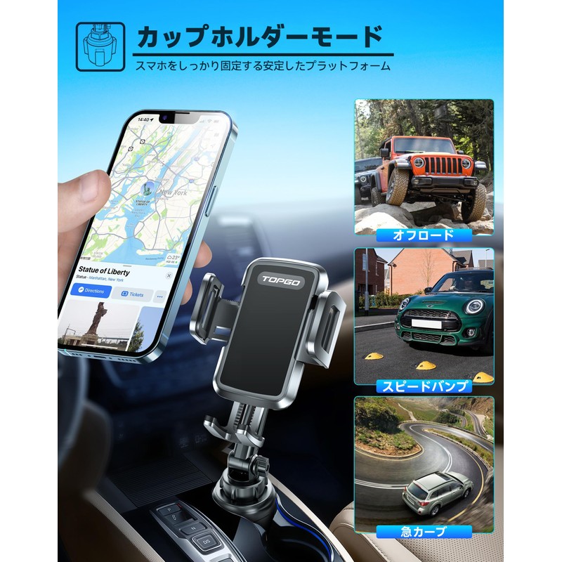 TOPGO Smartphone Holder, Car Drink Holder, In-Car Holder, Cup Holder, Smartphone Stand, Mechanical, Telescopic Arm, Stability, In-Car Phone Holder, Vertical, Horizontal, Up/Down, Left/Right