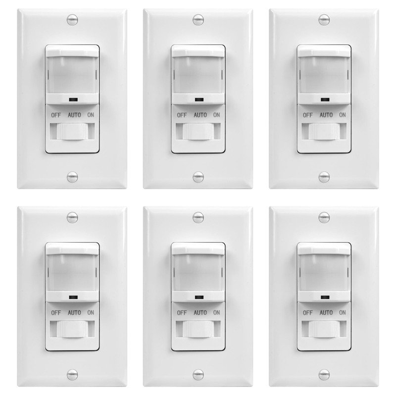 • 6-Pack motion sensor switch automatically turns lights, fans, and motors on/off based on the occupancy and vacancy detected in a room