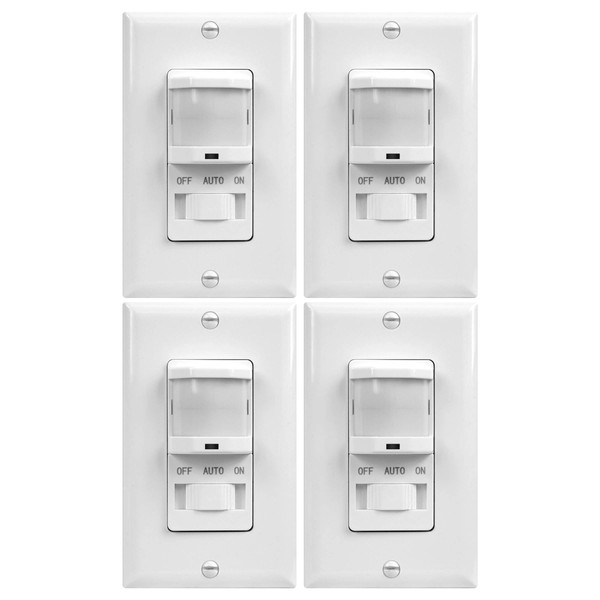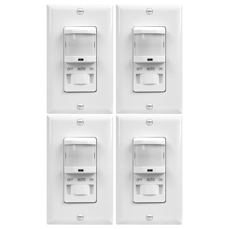 - 4-pack motion sensor switches automatically turn lights, fans, and motors on/off based on the occupancy and vacancy detected in a room
