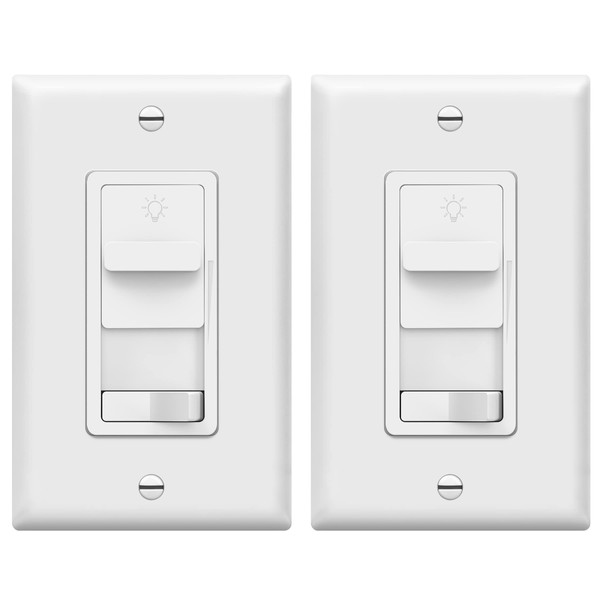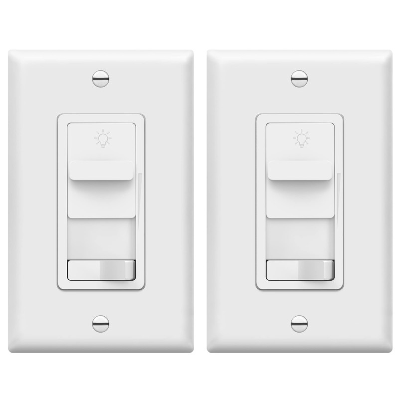 - 2 pack; white color; 200W LED/CFL; 300W incandescent/halogen; compatible with dimmable light bulbs only; 3-way or single pole; 18-#12 AWG (copper only); neutral wire not required; 1-year warranty; UL listed