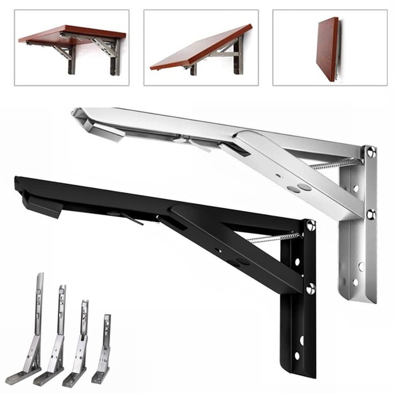 Feature: 【High-quality material】The bracket is made of high-quality stainless steel, with high strength, wear resistance and durability, and long service life. 【Lengthening spring】The design of the lengthening spring increases the bounce speed of the bracket, and the bounce is smooth without jamming. The entire folding support structure adopts a triangular design, which can be extended to 90, making it more firm when unfolded. 【Increase the use of space】In a limited space, it can help you increase the use of space when needed, such as making extensions for tables and cabinets, small folding tables and folding shelves. You can expand it when you need it and fold it when you don't. 【Easy to use】Press the button to extend the stand, press again to retract the stand, easy to use. 【Scope of application】The stand can be installed behind a shelf or anywhere you need it, and a decorative pattern can be placed on top of the stand so that it can be used as part of your wall art when folded. Specification: Product Name: Folding Bracket Product Material: Stainless Steel Product Color: Black Product Size: As Shown Package included: 1* Folding Bracket 2 Bags of Screws
