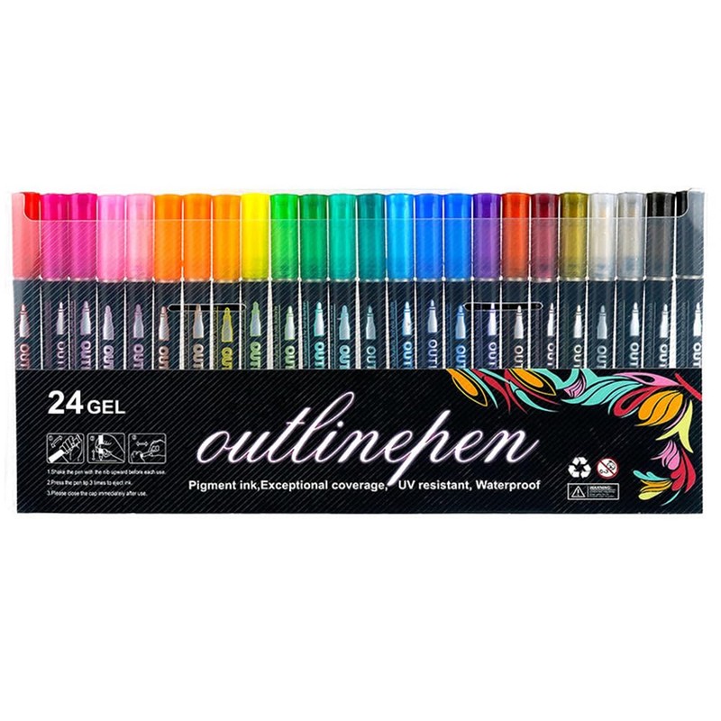 1 Set x 24 Colors Double Line Glitter Outline Pens