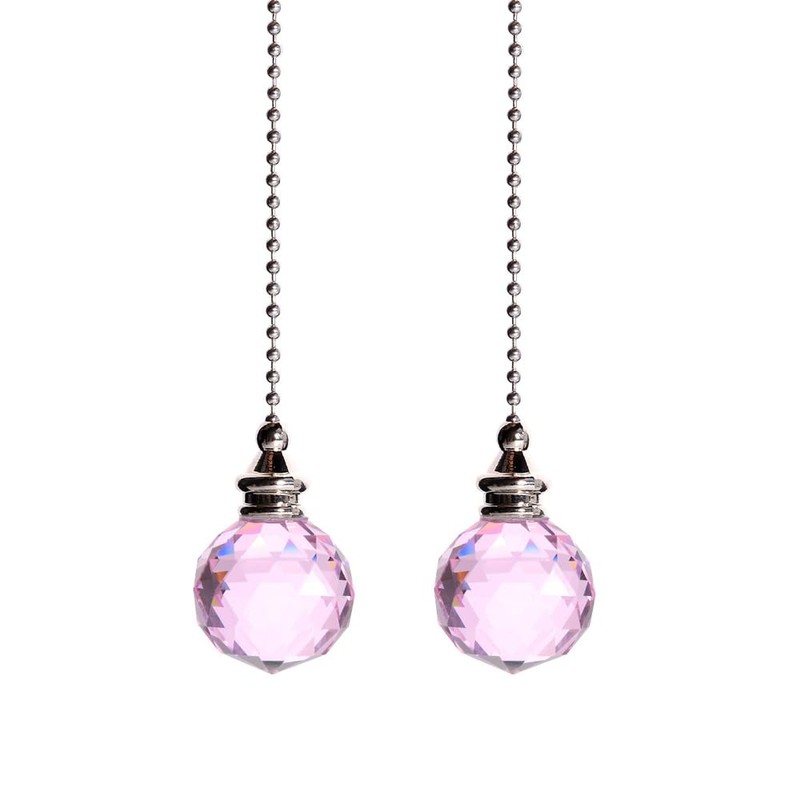 TopHomer Pink, 2 Pcs Crystal Ball Light Pull Cord, Clear Pull Chain Extension for Ceiling Fans, 30mm Long Pull Chain Connector, for Bathroom and Toilet Light