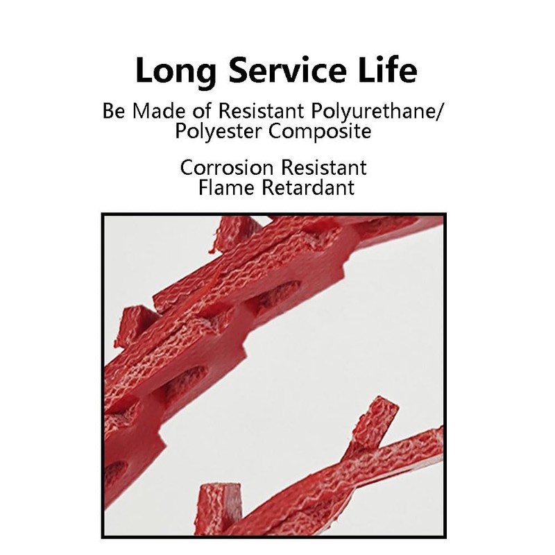 - Easy to Use The triangle belt is a removable splice belt, which is easy to install. It can be installed according to the detailed instructions in the installation scheme, and the length can be arbitrarily extended or canceled. If the live belt is partially damaged, it can be disassembled and replaced with the damaged part to continue using it.