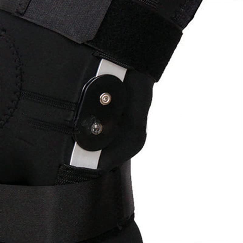 - External aluminium alloy hinges: The knee support is equipped with external mounted aluminium alloy hinges. These hinges not only provide extra support to the knee, but also protect it from possible injuries. They provide medial and lateral support and thus help stabilise the knee joint during physical activities