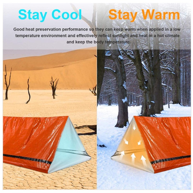 - [Emergency supplies] Our emergency tent is made of first aid colors, which is easier for rescuers to discover. It is actually one of the survival equipment in the wild. Adding a layer of first aid blanket to the sleeping bag can improve the thermal insulation ability and is of great benefit to ensuring the sleeping temperature.