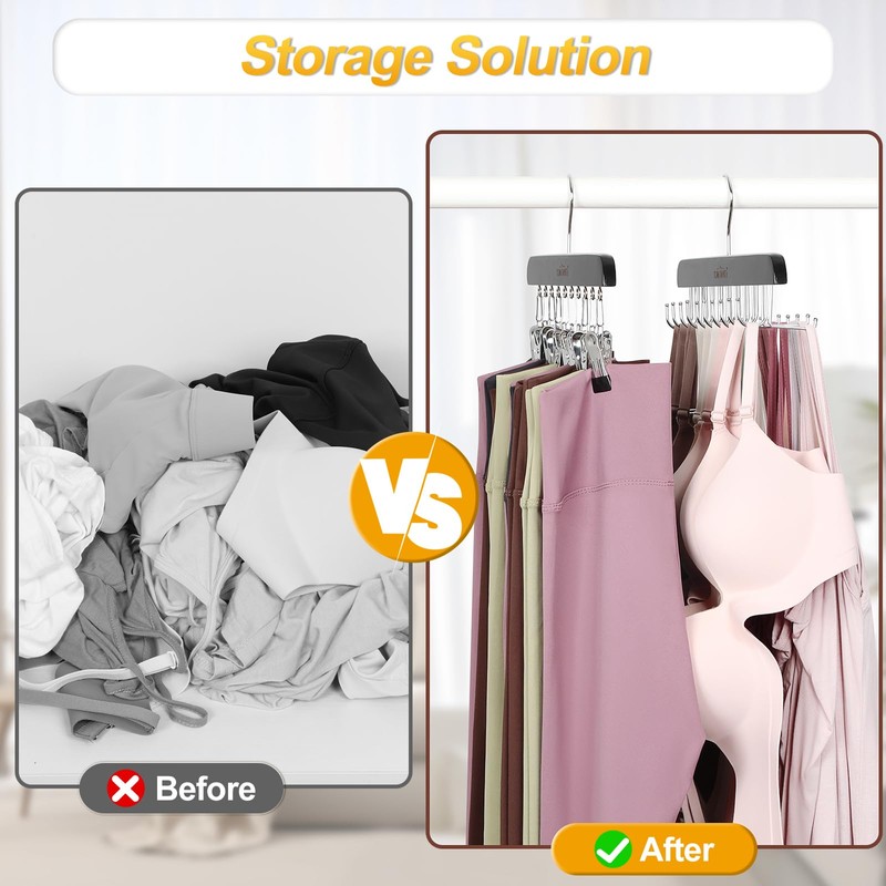 - Practical Storage Solution: This 2 in 1 closet organizer provides convenient storage solution for bra and leggings. 2 pack bra hangers with 40 hooks can hold 40 pieces of bra and 2 pack leggings hanger with 20 clips can store 20 pairs of leggings respectively, which is a practical and innovative solution for decluttering and organizing your closet