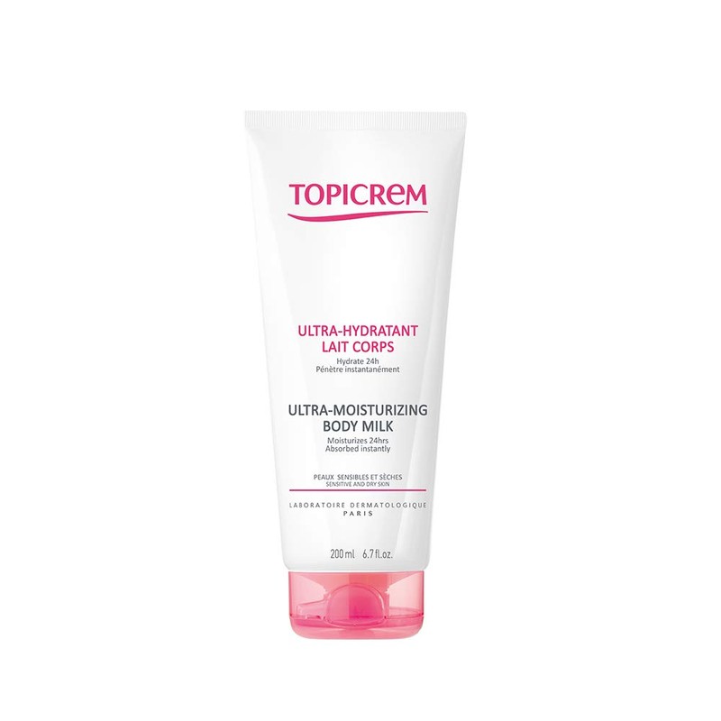 Topicrem Ultra-Moisturizing Body Milk 200ml is an unctuous emulsion which moisturizes dry and sensitive skins for 24h. Enriched with moisturizing (urea 2%, glycerin 9.5%), protector and nourishing agents, this care penetrates instantly and eliminates all signs of dry skin. It is particulary suitable for dry, dehydrated skin (by cold, by sun...) as well as children's fragile skin.
