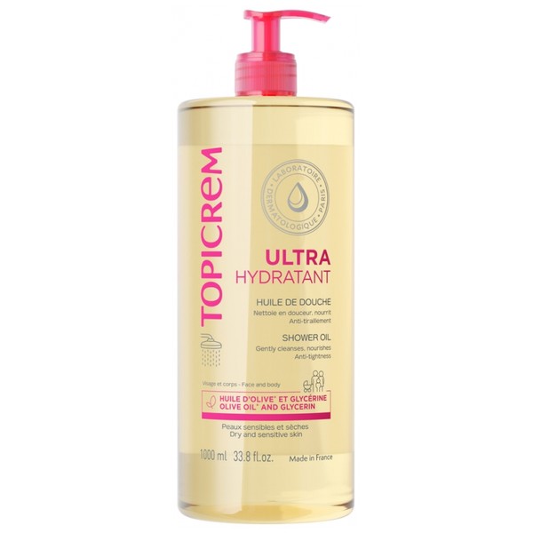 Topicrem Ultra-Hydrating Shower Oil 1 Litre is a gentle moisturizing cleansing base for the face and body of sensitive, dry skin.