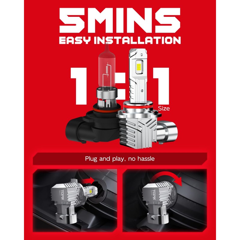 Topik T6 Ultra Bright 9005 Fog Light Bulbs, Upgrade Halogen Bulbs to LED, 300% Brighter, 6000K, Plug and Play
