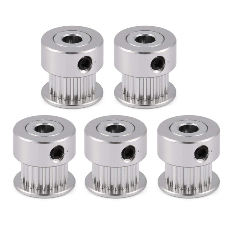 Topiky Timing Belt Pulley, 5 Pieces GT2 5 mm / 8 mm 20 T Aluminium Alloy Gear Synchronous Timing Belt Pulley for 3D Printer Timing Belt (5 mm)