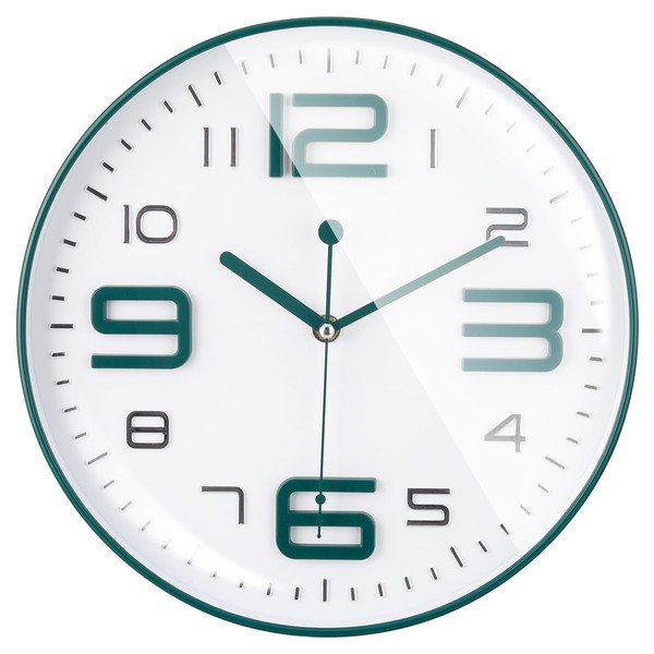 Topkey Silent Wall Clock 12 Inch Simple Design Non-Ticking Decorative Office Kitchen Wall Clock - Dark Green