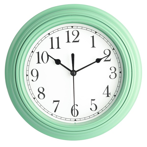 Topkey Silent Wall Clock Kitchen 9 Inch Retro Non-Ticking Decorative Bedroom Office Wall Clock -Army Green