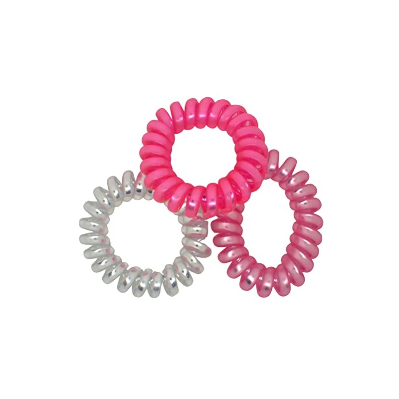 Topkids Accessories Metallic Spiral Hair Ties for Girls and Women, Hair Accessories for Girls, Hair Bobbles, Hair Elastics, Hair Bands for Women, Elastic Bands for Hair (3.5cm 3pcs, Pinks)
