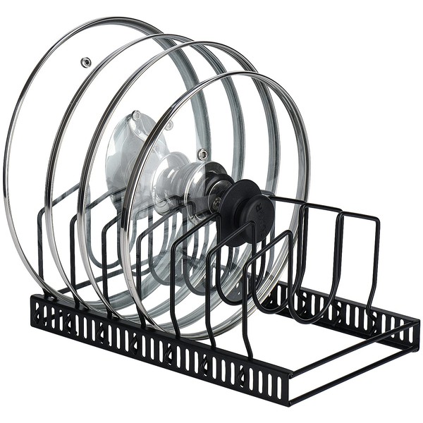 - 【Adjustable】The 7 dividers adjust in increments of 0.43 inch to securely hold various sizes of lids.