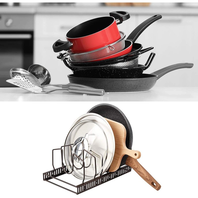 Toplife Toplife Pot Lids Organizer Rack for Cabinet and Countertop, 7+ Pan Lids and Bakeware Organizer Rack Holder with 7 Adjustable Compartments - Brown