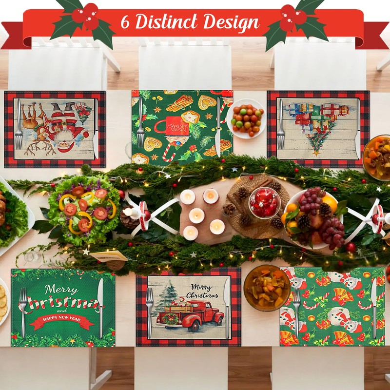 - Warm Pattern: adorned with charming Christmas elements and plaid designs, these Linen dining table place mats add a festive touch to your table decor;The Christmas design exudes warmth and creates a cozy atmosphere, setting the nice backdrop for a memorable holiday gathering