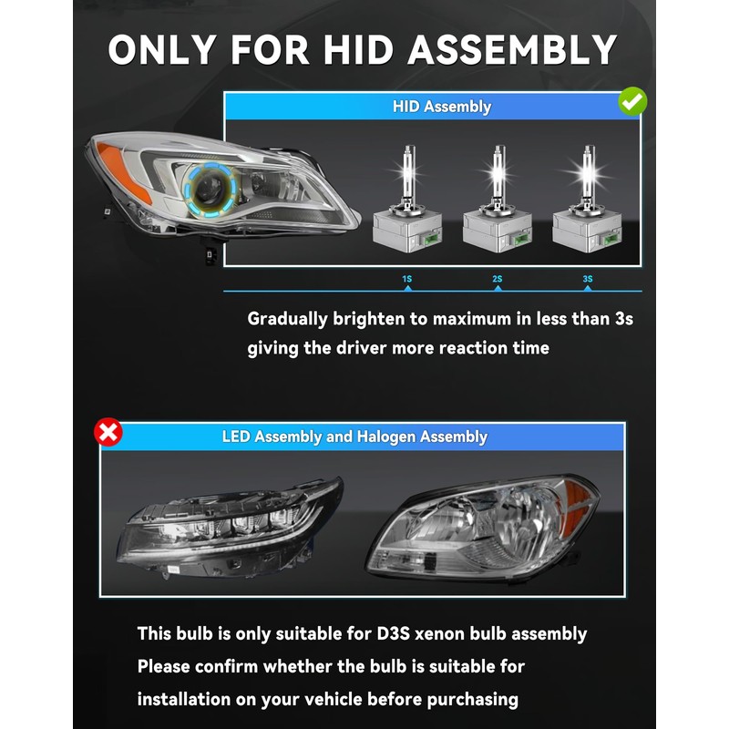 - 【Quality Assurance】D3S bulb is produced according to international standards and has passed multiple test certifications such as CE, FCC, ROHS and DOT. It is produced in strict accordance with the production specifications and quality control requirements of automobile manufacturers to ensure long-term stable and reliable performance