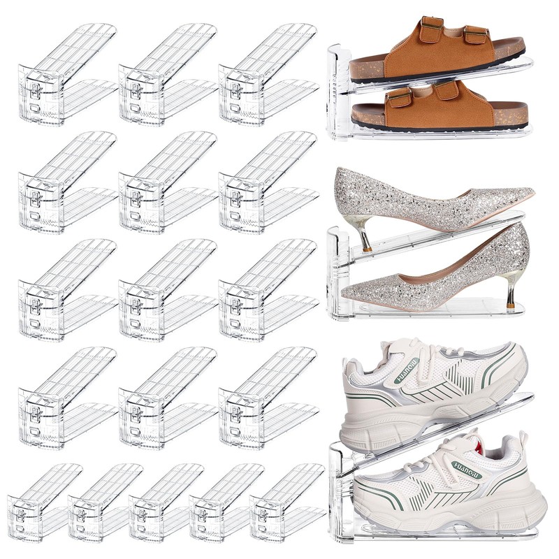 TOPNEW Shoe Slots Organizer for Closet 20 Pack Adjustable Level Shoe Stacker Holder Organization Double Layer Storage Space Saving Shoe Rack Organizer for Closet (Transparent)