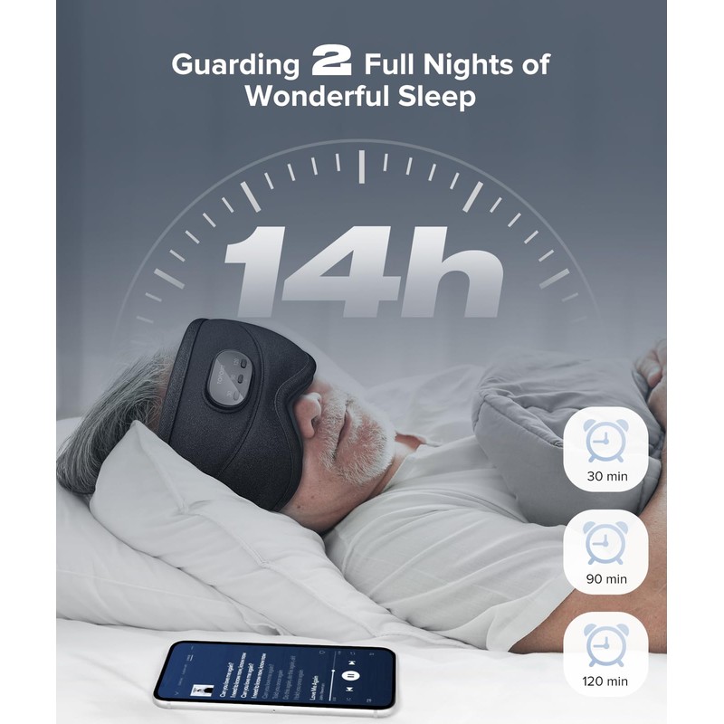 - 15-Hour Battery Life & 3-Stage Timer: Enjoy up to two nights of uninterrupted audio playback to enhance your sleep. Additionally, our three timer options help you break free from daytime fatigue - a 30-minute power nap, a 90-minute meditation session, and a 120-minute deep sleep mode