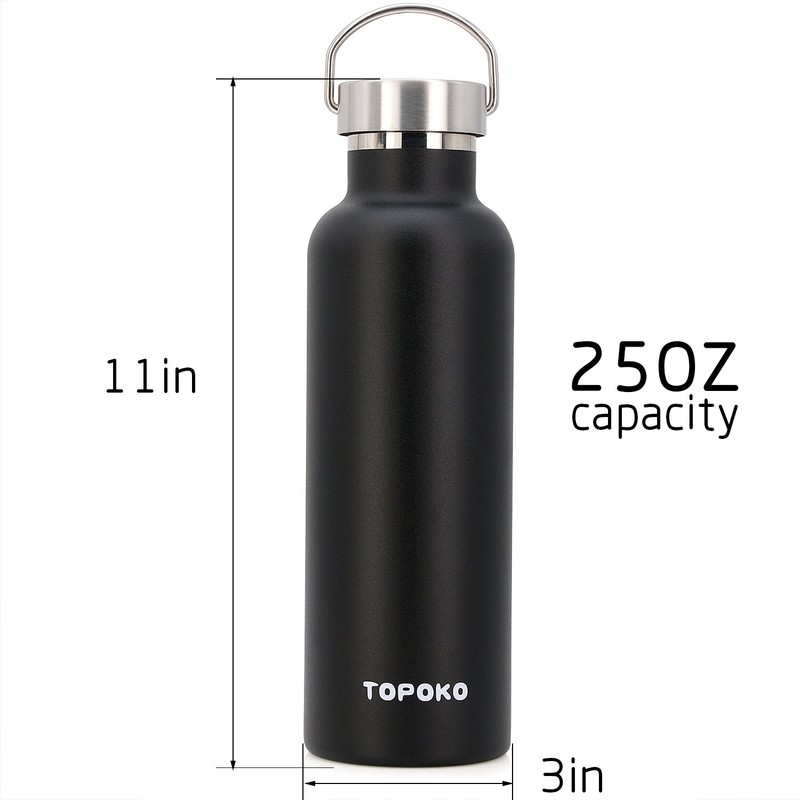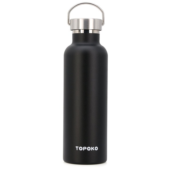 TOPOKO 25 oz Stainless Steel Vacuum Insulated Water Bottle, Keeps Drink Cold up to 24 Hours & Hot up to 12 Hours, Leak Proof and Sweat Proof. Large Capacity Sports Bottle Wide Mouth Metal Lid (Black)