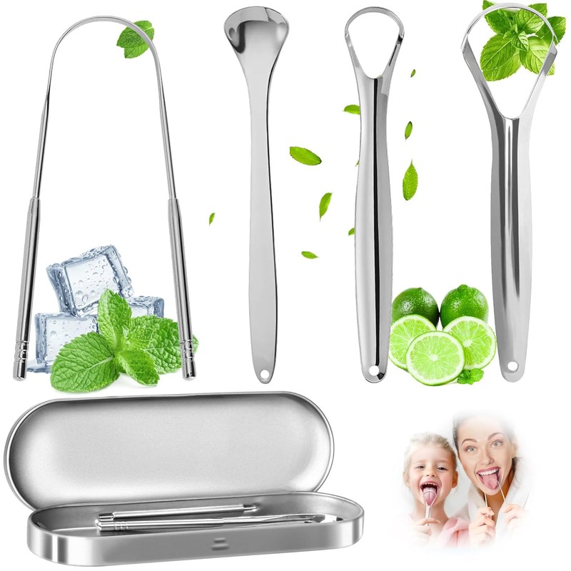 š ćIncluye 4 limpiadores de lenguaćRaspadores en forma de U, 2 x raspador "hueco" y raspador "macizo". š ćRespiración bucal frescaćEstá dirigido profesionalmente a tu mal aliento, revestimiento grueso de la lengua. Los beneficios directos de usar este rascador de lengua para raspar tu lengua incluyen respiración fresca y reducir el mal aliento. Este rascador de lengua combinado es muy eficaz en la eliminación de recubrimientos de lengua, residuos de alimentos y olores orales de la lengua, mejorando la textura y la apariencia de la lengua, mejorando así la confianza y mejorando la salud general. š ćMaterial de acero inoxidablećUtilizando acero inoxidable 304 de grado alimenticio, Fuerte antideslizante, sin boca caliente, resistencia a altas temperaturas, resistencia a la abrasión, no se oxida, no se deforma, fácil de limpiar, saludable y duradero.