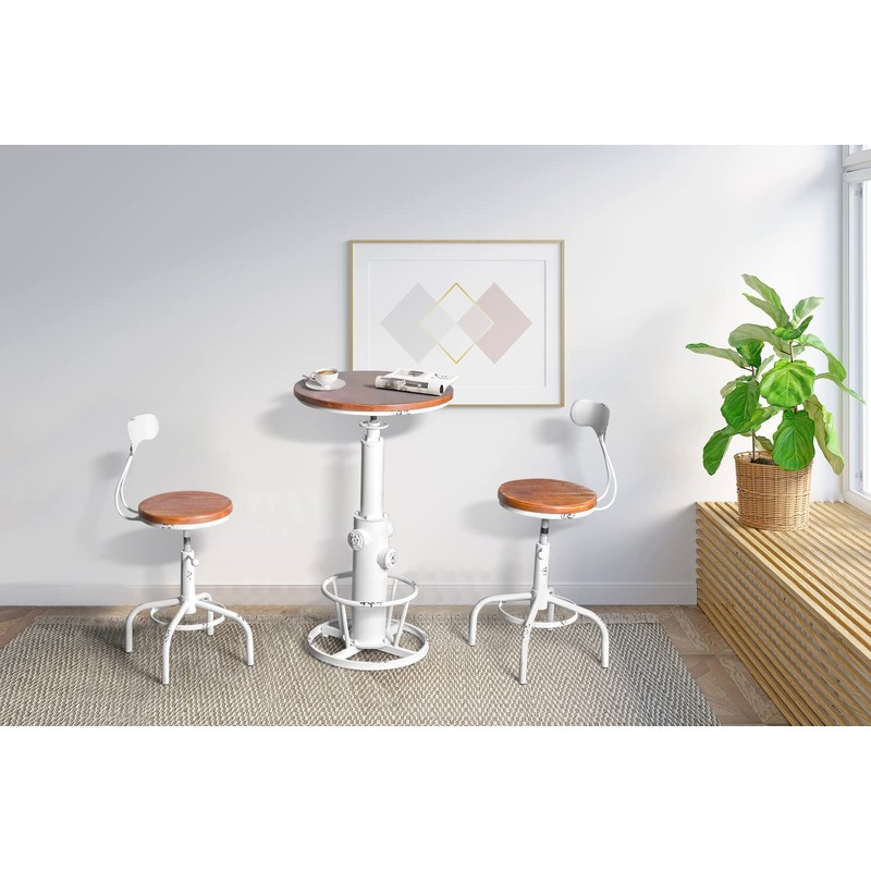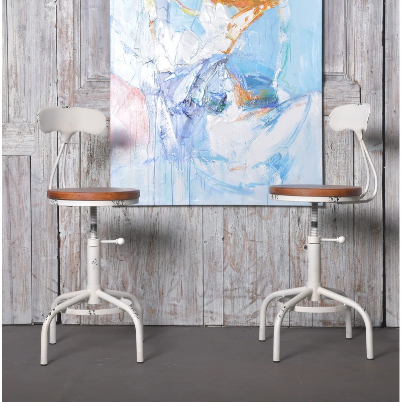 Topower Home Kitchen Stool, Industrial Counter Stool, Height Adjustable Swivel Bar Stools Indoor House Design with Iron Backrest Antique White Set of 2