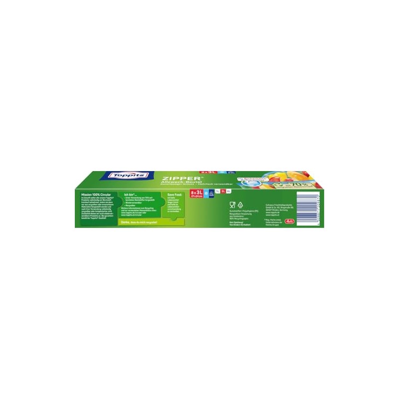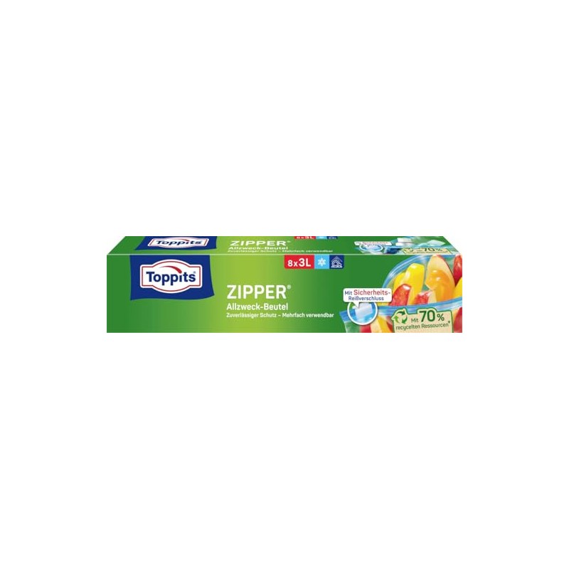 Toppits Pack of 8 3 Litre Clear Zips