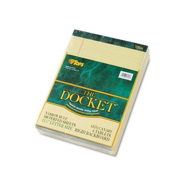 Tops 63376 Double Docket Ruled Pads, Narrow Rule, LTR, Canary, 6 100-Sheet Pads/Pack