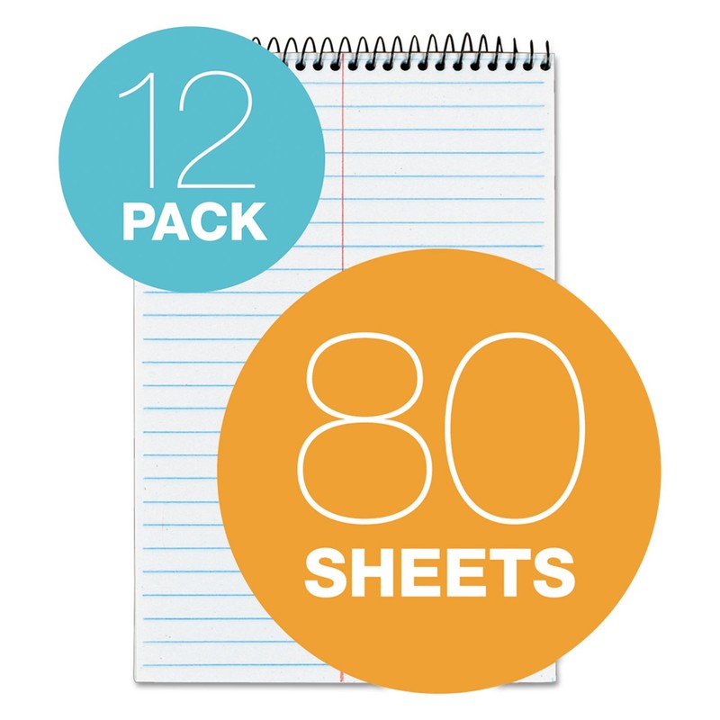 • Sheet size: 6"W x 9"H. Steno pad has a white chipboard cover and white pages.
