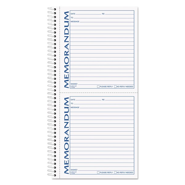 TOPS Memorandum Forms Book, 2-Part, Carbonless, 2 Memos per Page, 100 Sets per Book (4150)