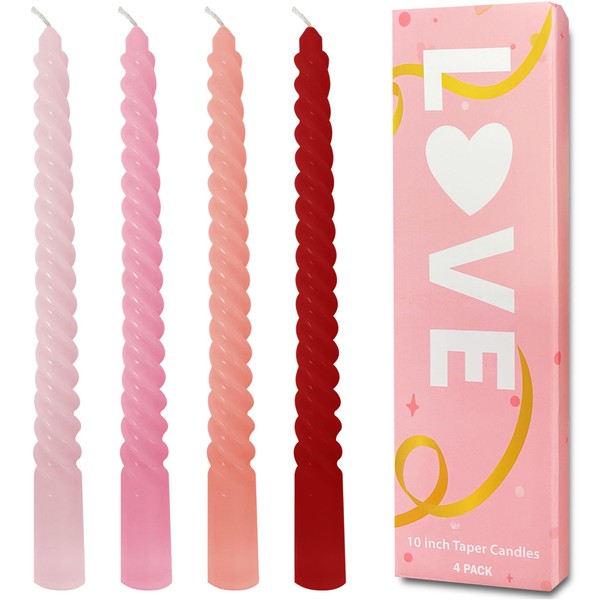 Topsics Red Gradient Taper Candles, Spiral Twisted Taper Candles Set of 4, Unscented Taper Candlesticks 10 inch Tall, Home Decor Wedding Decorations