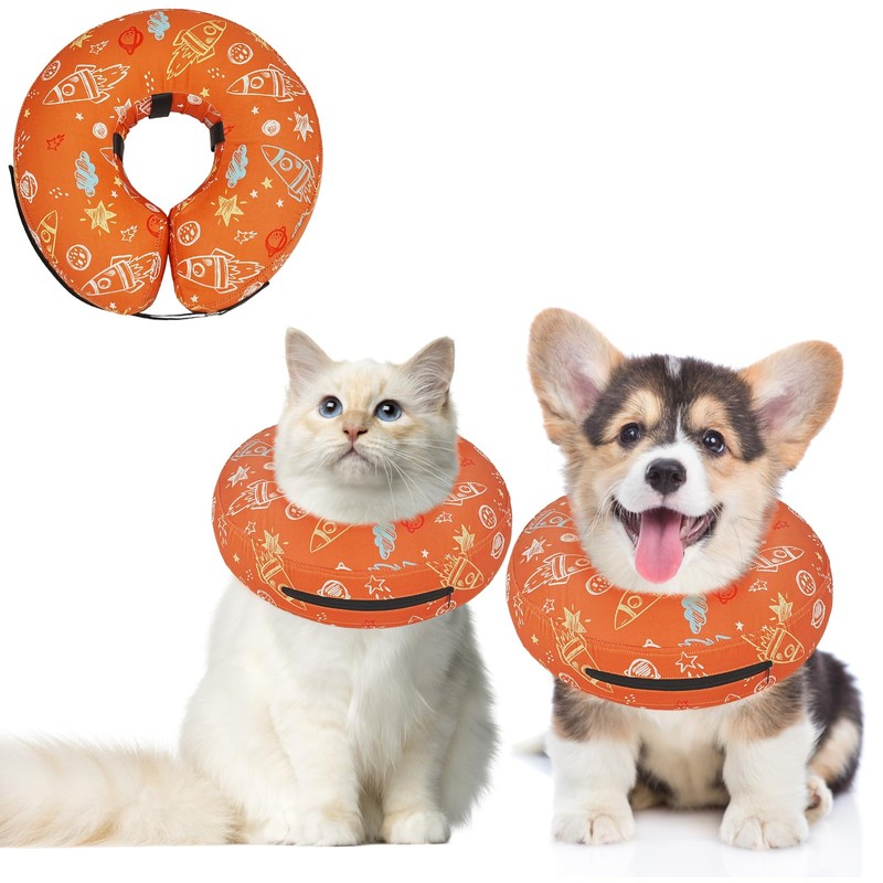 - Scratch & Bite Resistant - Our inflatable dog collar is a great choice after surgery. It replaces the usual dog cones. The collar is like a soft donut around your dog’s neck, stopping them from biting or licking their wounds. The cute donut shape makes it a stylish accessory instead of a boring dog surgery collar. Your pet will be much happier wearing it.